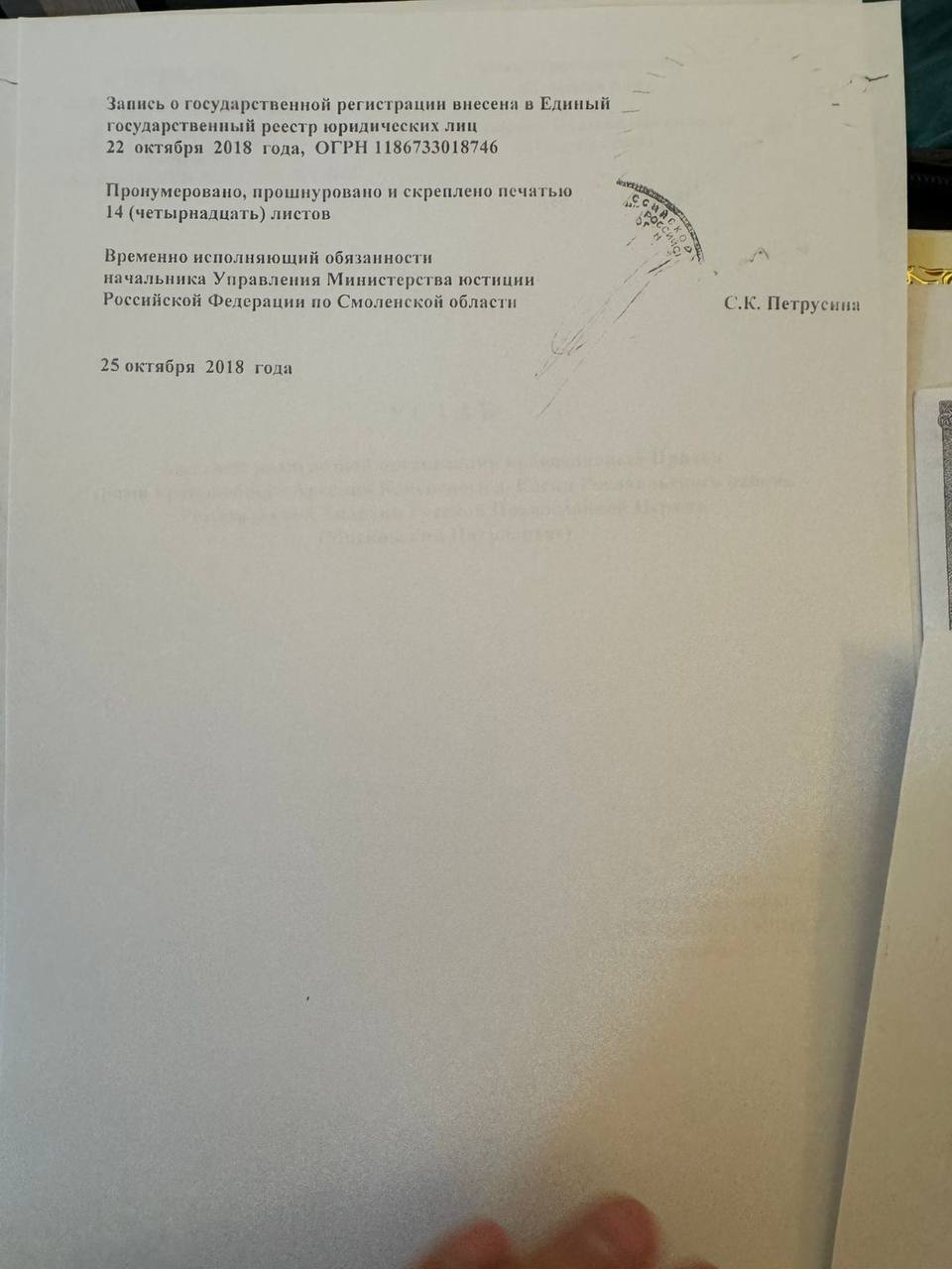 ОГРН: 1186733018746